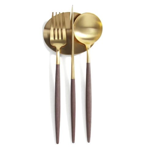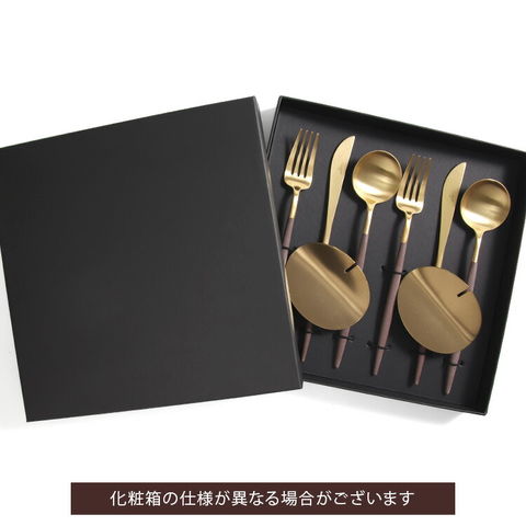 クチポール ゴア ブラウンマットゴールド ディナーセット(ナイフ・フォーク・スプーン) + カトラリーレストゴールド 8点セット ギフトボックス 正規販売代理店 カトラリー 化粧箱付 結婚祝い プレゼント 贈り物 ギフトセット 【クチポール Cutipol】【食器 カトラリー】【ギフト】のレビュー