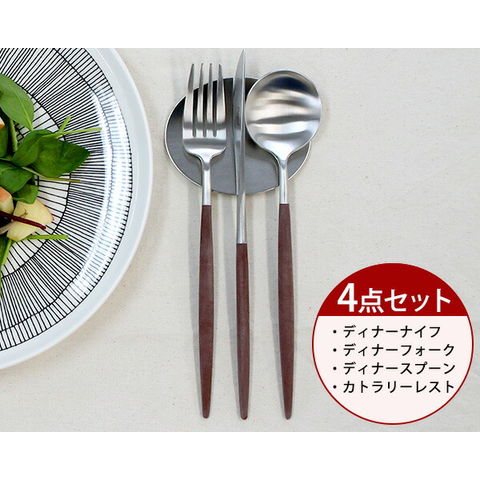<4点セット>クチポール ゴア ブラウン ディナー3点(ディナーナイフ・ディナーフォーク・ディナースプーン)&カトラリーレスト1点 Cutipol GOA 正規販売代理店 Cutipol ゴア ブラッシュド マット 【クチポール Cutipol】【食器 カトラリー】