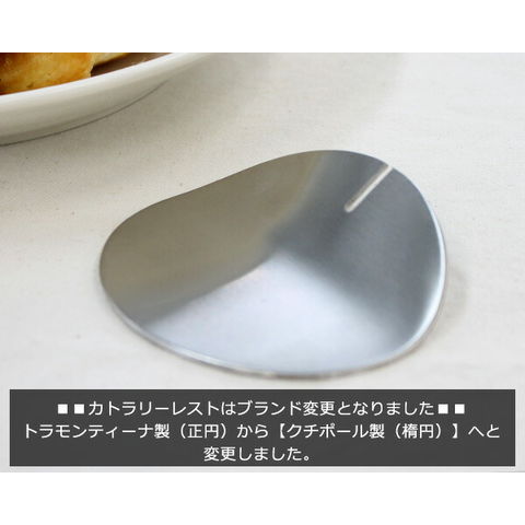 | 備考 | ・カトラリーレストには傷やくすみ、黒点がみられます。 ・製作工程上、仕上げの段階で磨きをかけるため、未使用の場合、柄の樹脂の色が少し白みを帯びていますが、ご使用される中で色は徐々に濃くなります。 オリーブオイル等を塗付していただくと色が濃くなり、退色も防ぐことができます。 |
