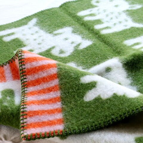 「ヴォフ」は北欧デザインらしい愛らしいモチーフが魅力で、インテリアにも自然になじむ一枚。環境への配慮を大切にするクリッパンならではの、持続可能でエコフレンドリーな製造背景も大きな特長です。ウールは調湿性にも優れており、冬は暖かく、蒸れにくいため一年を通して快適。65×90cmのコンパクトサイズは、出産祝いなどのギフトにも人気です。環境にやさしく長く使える一枚です。
