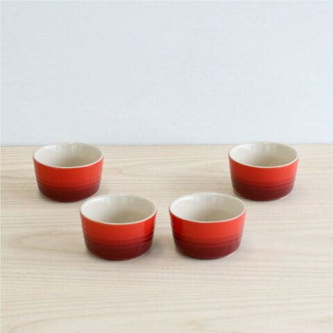 世界中のキッチンで愛されるルクルーゼ(Le Creuset)から、使いやすさと可愛さを兼ね備えたラムカン 100ml 4個セットが登場。鮮やかなチェリーレッドと温かみのあるオレンジの2色をご用意。セットになっており、テーブルをぱっと華やかに彩ります。4個セットだから、ご家族や来客用、用途別に使い分けたい方にもぴったりのお得なアイテムです。