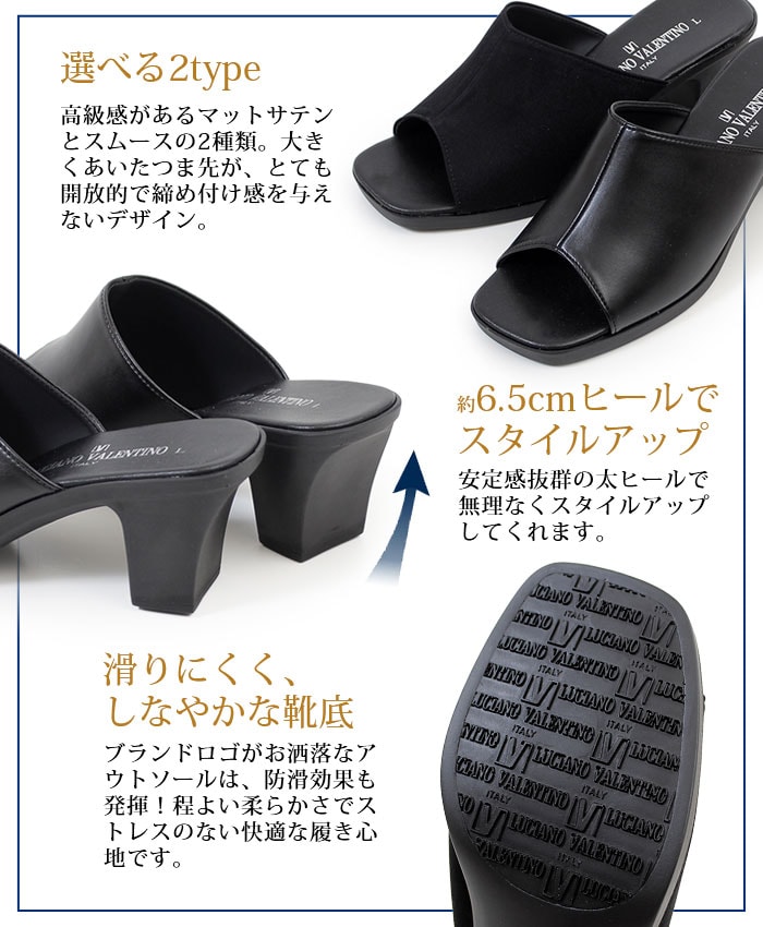 LUCIANO VALENTINO 3900 3901 黒 オフィス サンダル レディース 美脚 ヒール 黒 LLサイズ マットサテン(3900)