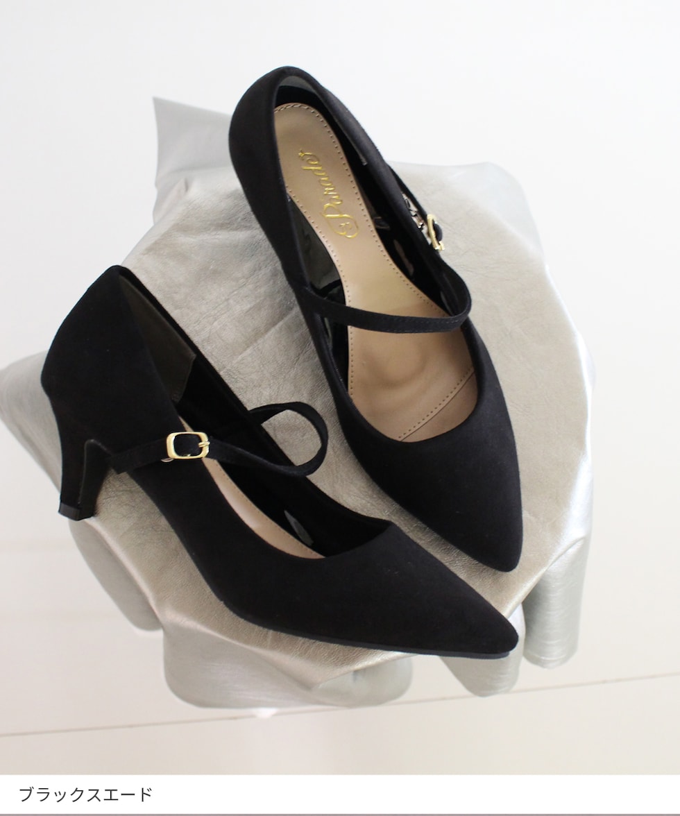 パンプス レディース ストラップ Parade 19035 極ふわっ 24.0cm ブラックスムース