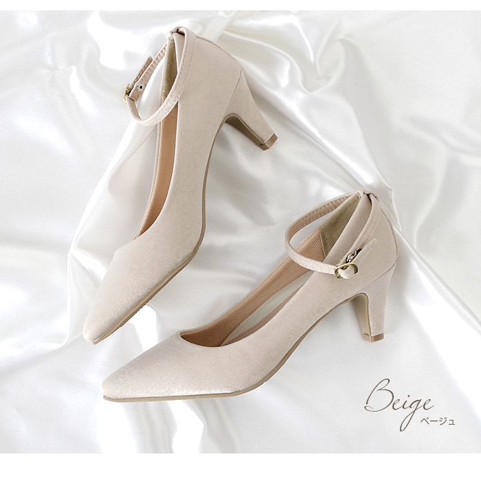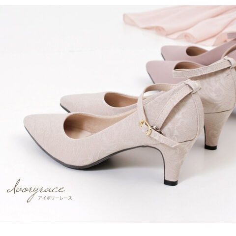 パーティ、オケージョンシーン、日常使いでも幅広くお使いいただけるよう、可愛く、上品な雰囲気に仕上げてみました。クッションが気持ちいい!とリピーターも多い、話題の極ふわクッションを使用した機能性にも自信のあるパンプスです。ドレススタイルと相性の良いレース生地、ドークレ生地の2種類ご用意させていただきました。ストラップは取り外し可能な2way仕様です。