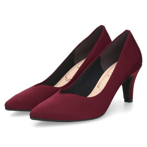ベーシックパンプスがエレガントにブラッシュアップ。甲を深めに覆いながらもさり気ないVカットが足元をキレイ見せ。中敷きはクッションが効いて足をいたわるソフトな履き心地。