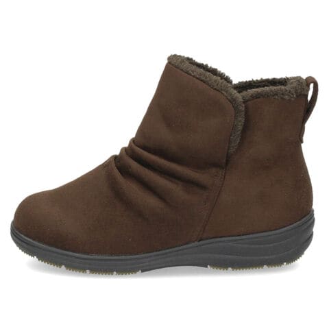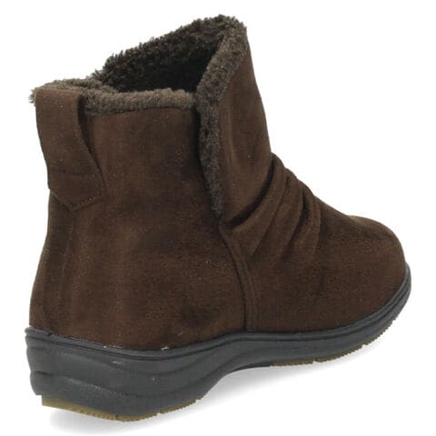 甲幅広めの方やむくみなどにお悩みの方の足にも優しい幅広ゆったり設計。両サイドゴム仕様でスポッと足入れできるショートブーツ。内側は起毛素材&断熱性に優れたインソールを使用しているのでとってもあったか。