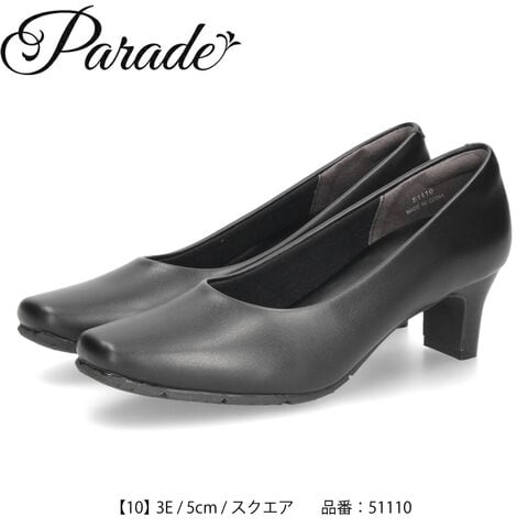 黒 パンプス ヒール スクエアトゥ やわらか屈曲パンプス 靴 3E 4E Parede 24.5cm 【10】3E/5cm/スクエア