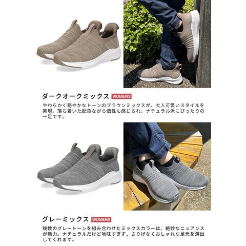 スニーカー スリッポン スリップインタイプ 軽い 紐なし 屈曲性 楽すぽっ Parade 981706 23.0cm ダークオークミックス