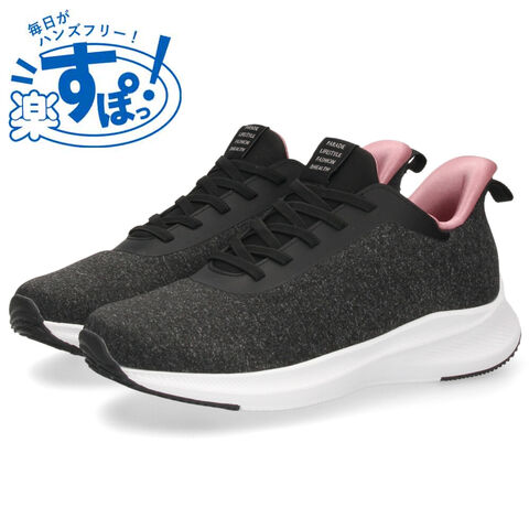 楽すぽっ 立ったまま履ける靴 レディース メンズ スニーカー スリッポン Parade 981705 51708 51711 23.5cm ブラックピンク