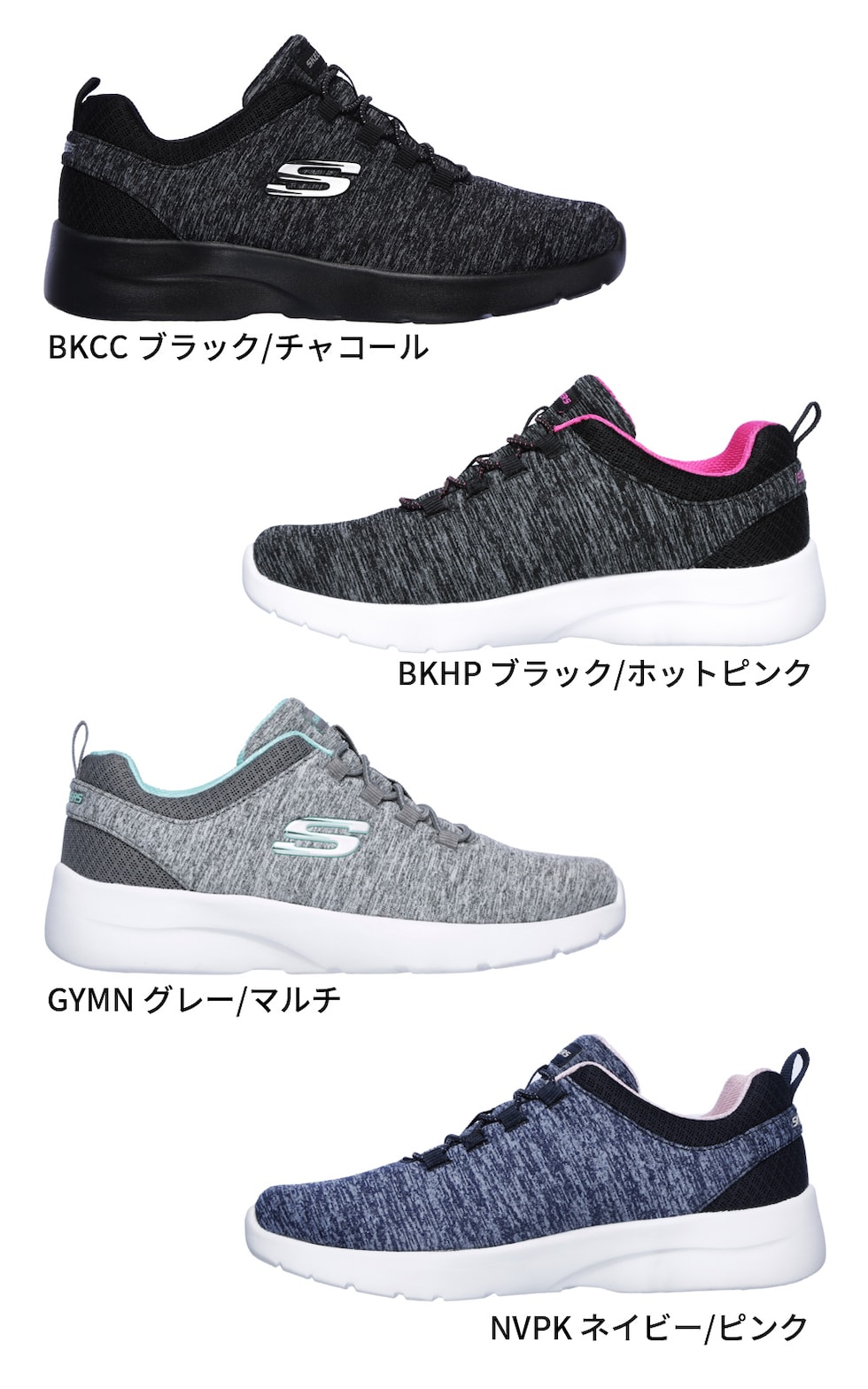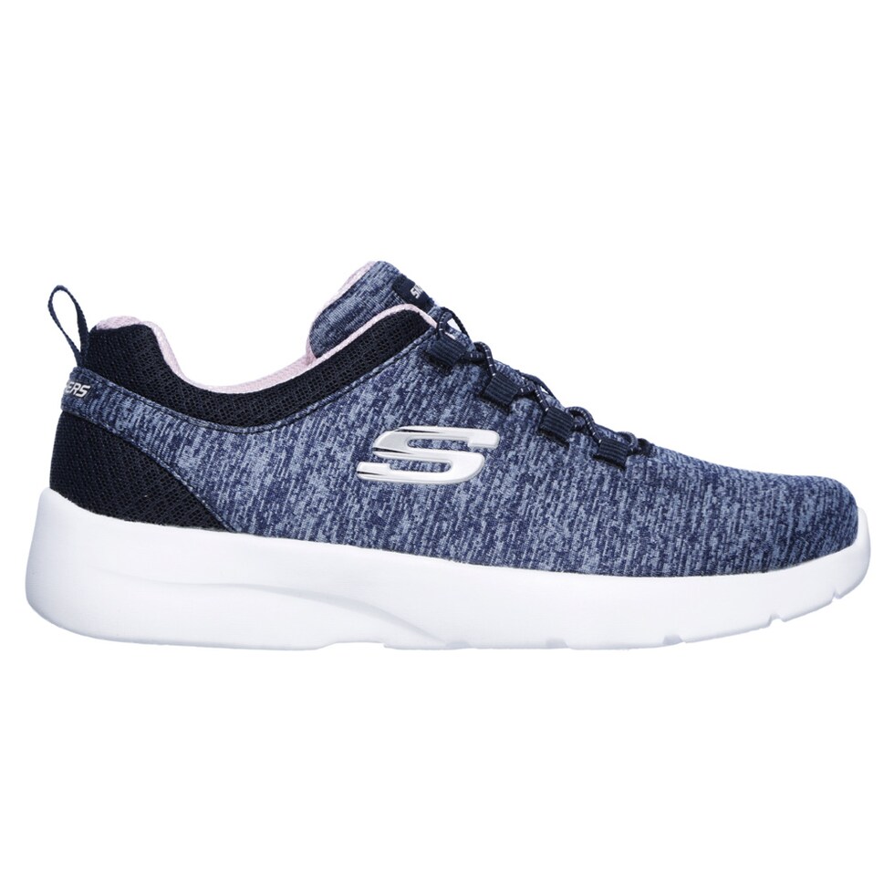 ソフトなヘザーメッシュのアッパー、固定ストレッチレースのフロント、衝撃吸収ミッドソール、Skechers Memory Foamを採用したカジュアルなスポーティシューズ。
