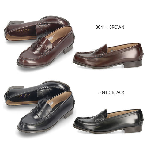 HARUTA ハルタ ローファー レディース 本革 3041 定番 通学 学生 靴 1E 細身 22.5~25.5cm ブラウン クロ スクール 22.5cm ブラック