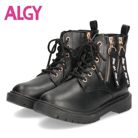 ALGY アルジー ブーツ ジュニア ガール 女の子 靴 飾りジッパーショートブーツ 3459 22.0cm ブラック