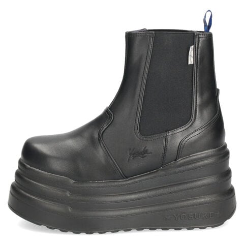ブーツ レディース 厚底 3E ゆったり 幅広 サイドゴア ヨースケ YOSUKE 2710026 ショートブーツ チャンキーソール 22.5cm ブラックマルチ