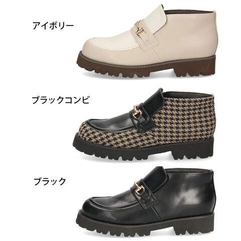 シューズとブーツの中間のような少し深めの丈感で、秋冬だけでなく春先まで履けるスリッポン。
