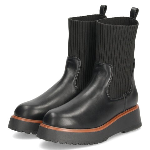 フィット感の良いリブニット×しっかりとした合成皮革の異素材ミックスブーツ。