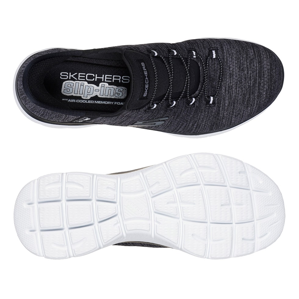 固定式ストレッチレースを配した4WAYストレッチのヘザーメッシュアッパーと、クッション性に優れたSkechers Air-Cooled Memory Foamインソールが特長です。