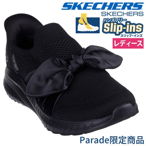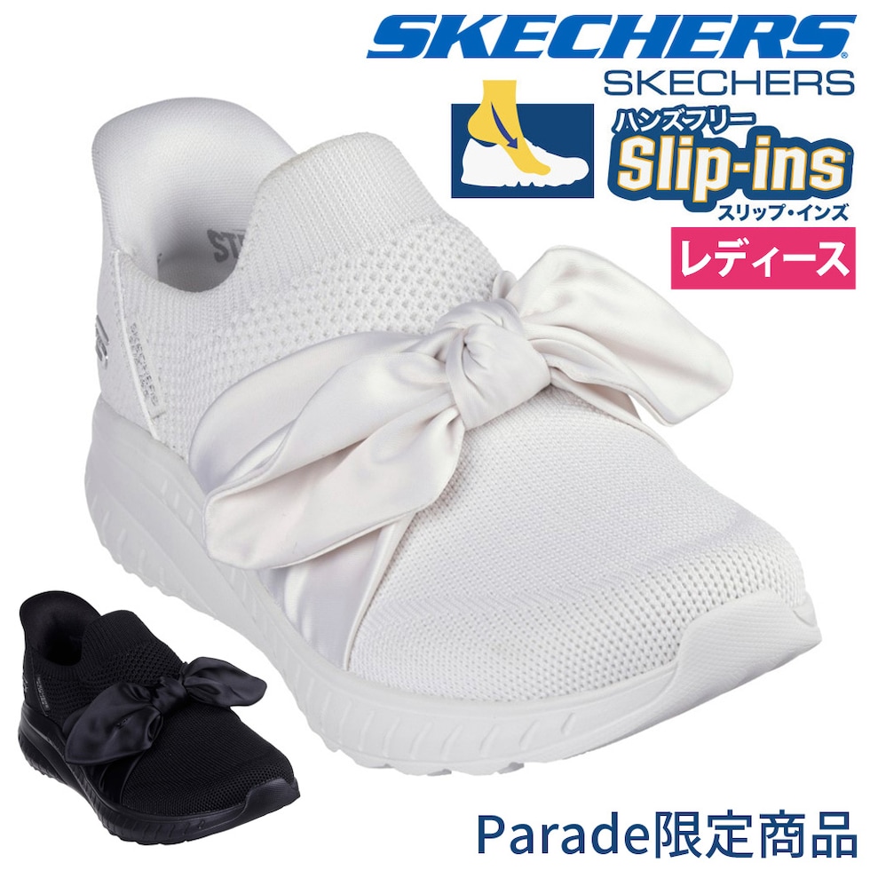 スケッチャーズ スリップインズ レディース スリッポン スニーカー リボン ボブス スポート スクワッド カオス インスパイア アウェイ 117630 Parade限定商 22.5cm BBK-ブラック