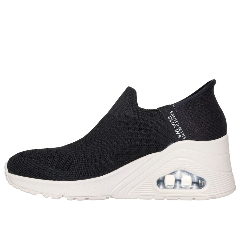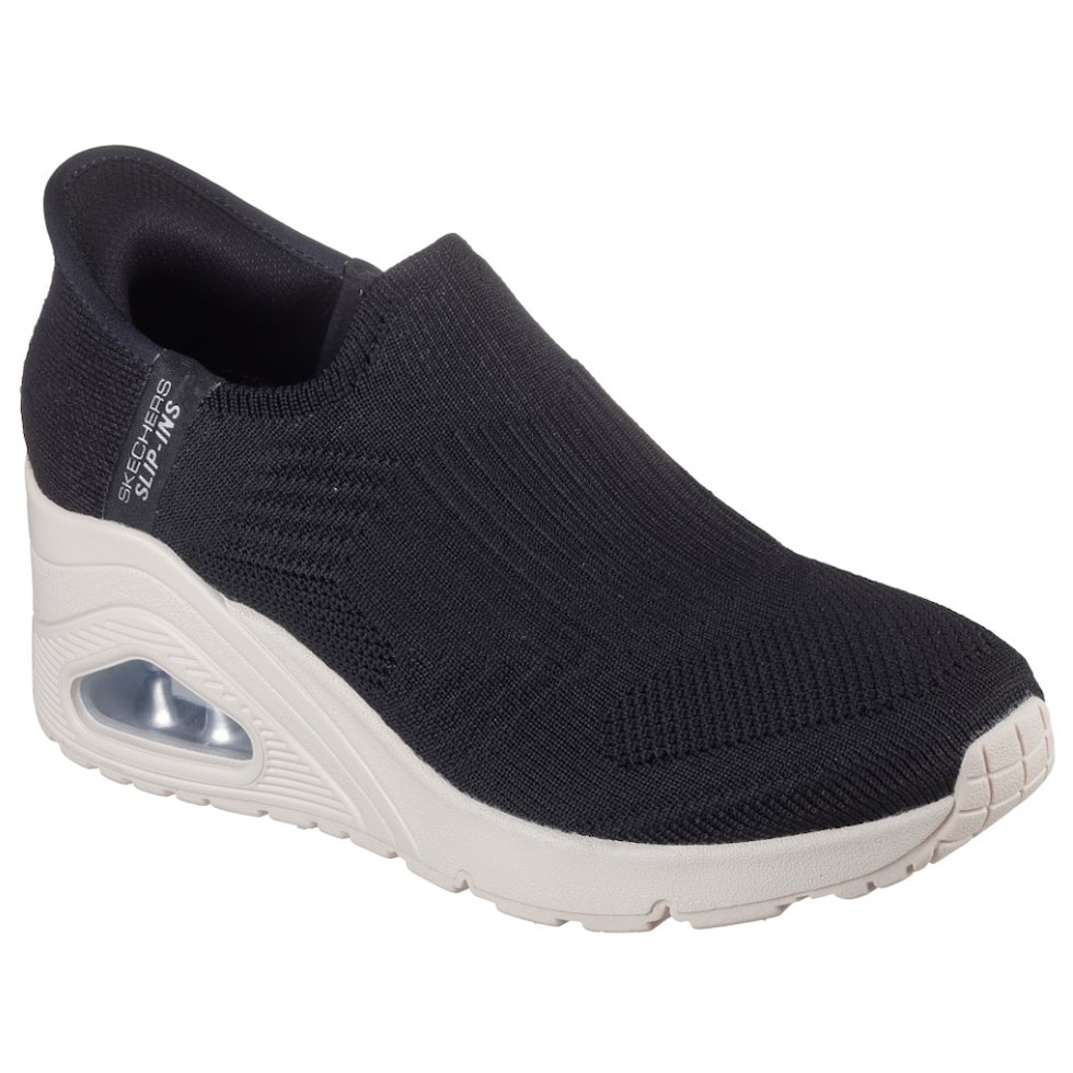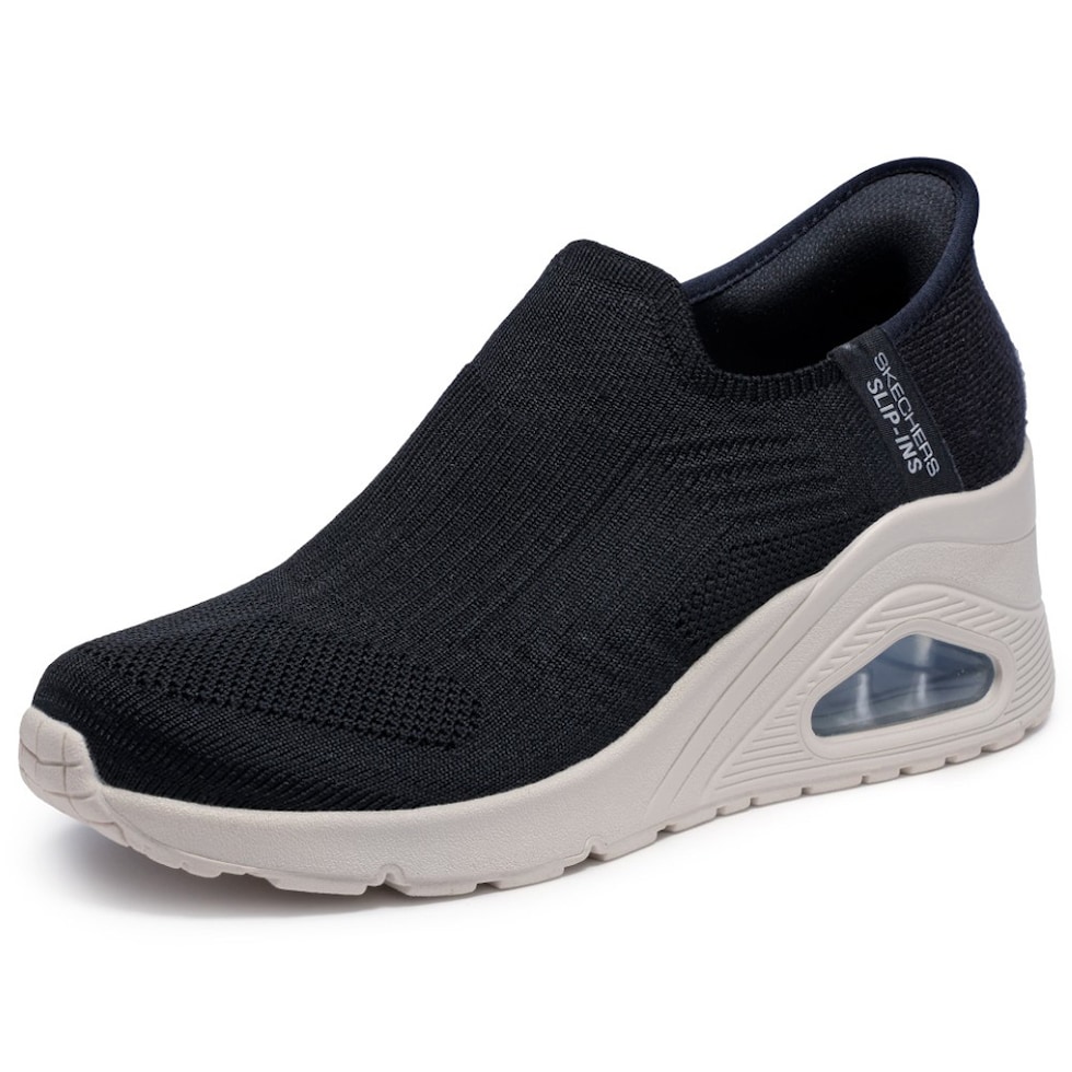 ワンランク上の装いを叶える、スタイリッシュで快適なSkechers Hands Free Slip-ins(スケッチャーズ ハンズフリー スリップインズ) Skechers Street(スケッチャーズ ストリート):ウノ ウェッジ - キッキング ニット。Stretch Fit(ストレッチフィット)のエンジニアードニットのアッパーを配したファッションスニーカー。Skechers Air-Cooled Memory Foam(スケッチャーズ エアクールドメモリーフォーム)インソール、およびビジブル構造のエアクッション入りSkech-Air(スケッチエア)ミッドソールを備えたプラットフォーム・厚底ウェッジを搭載しています。
