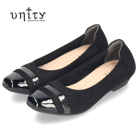 unity ユニティ パンプス 撥水 オールウェザー対応 スクエアトゥ 異素材コンビ ワイズE 478055 22.5cm ブラックスエード