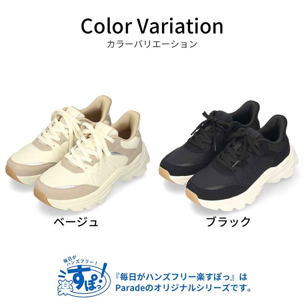スニーカー レディース スリッポン 靴 厚底 ローカット 手を使わずに履ける Parade 51702 23.5cm ブラック