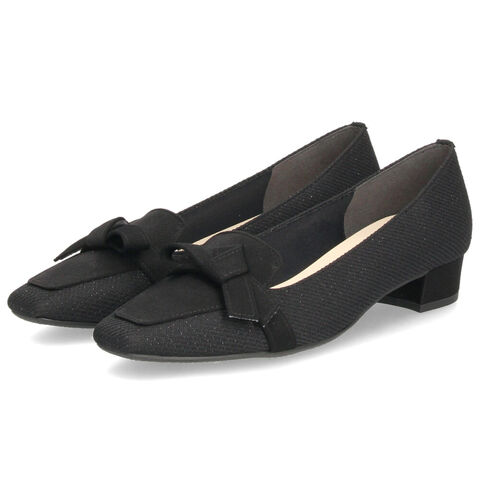 アシンメトリーリボンがポイントのローファーデザインパンプス。