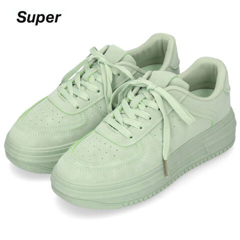 スニーカー レディース 靴 ローカット レースアップ ウォッシュ加工 厚底 Super 95023 LLサイズ ミント