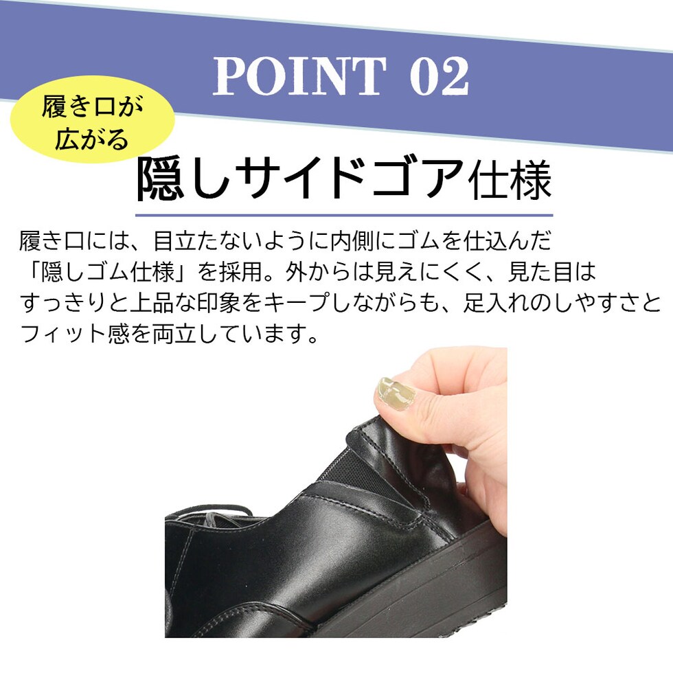 デスクワークなどリラックスしたい場面では、かかとを踏んでスリッポン感覚に。外出時はかかとを立てて、きちんとしたビジネススタイルに。TPOに合わせて、自由に履き方を変えられます。
