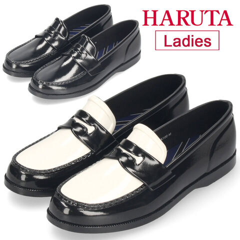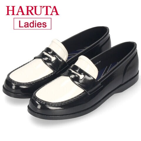 HARUTA ハルタ ローファー レディース レインシューズ CK100 LL(25.0-25.5) クロ/シロ