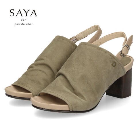 SAYA サヤ サンダル レディース 本革 ストラップサンダル 甲深 太ヒール 51254 M(23.0) オリーブ
