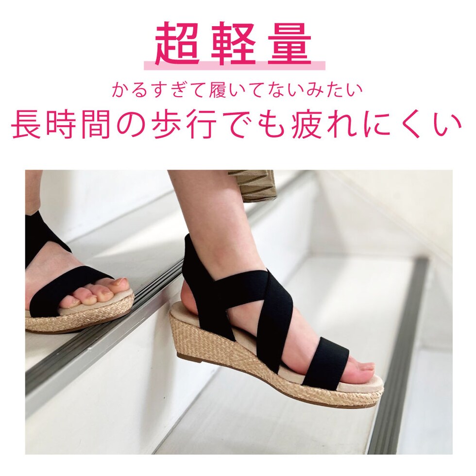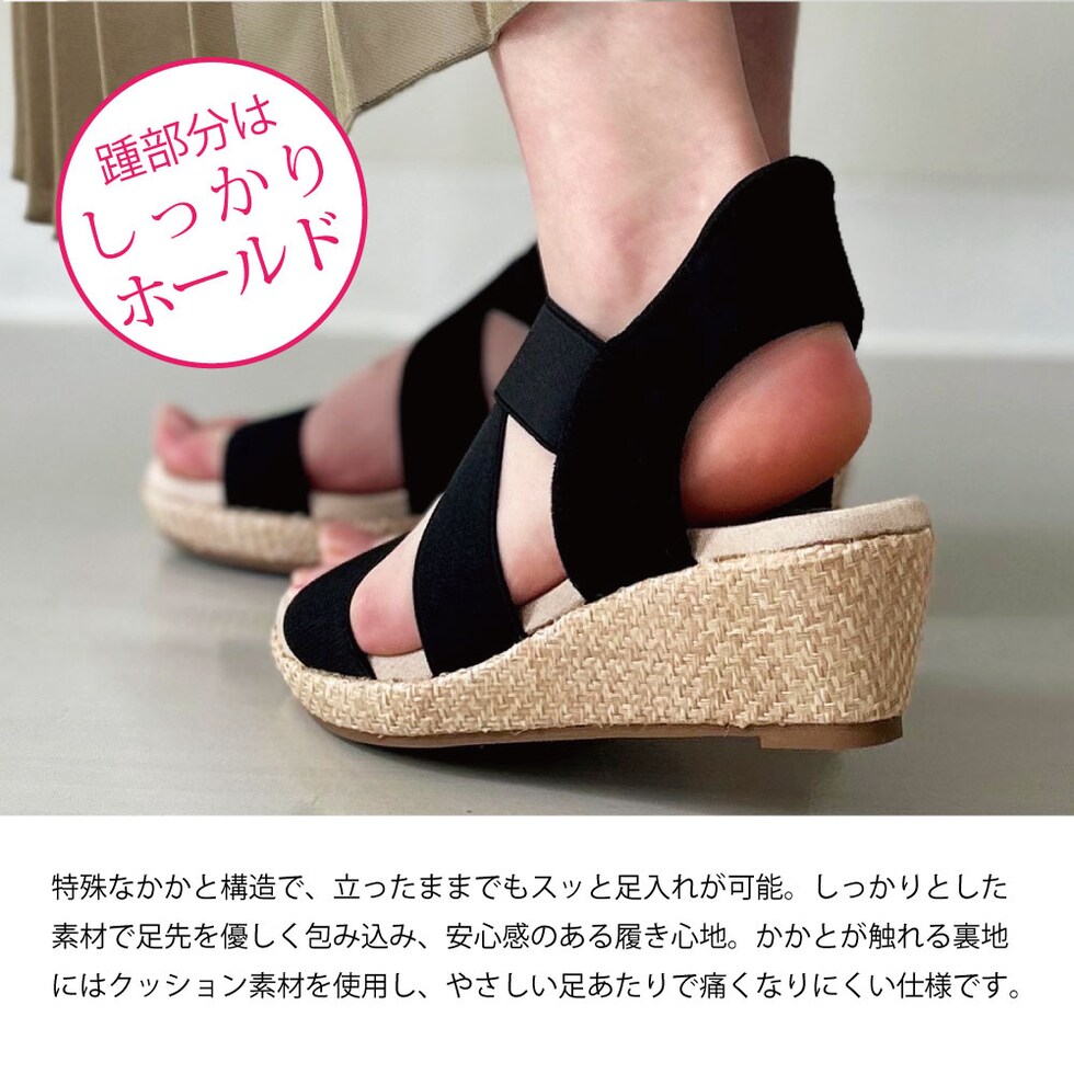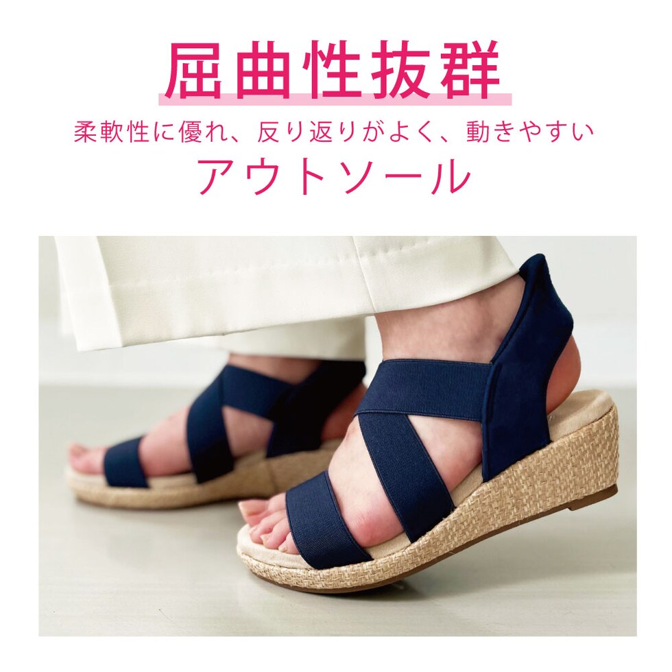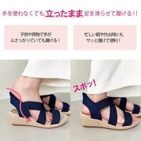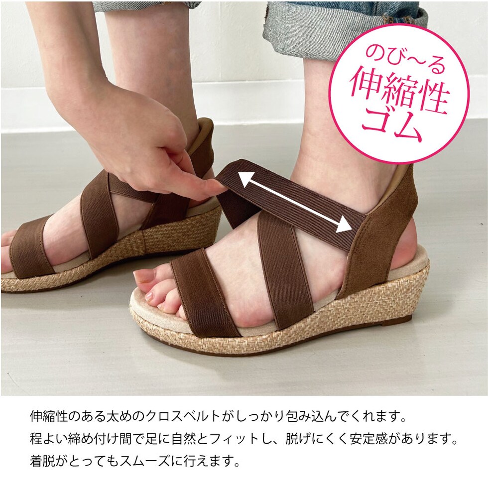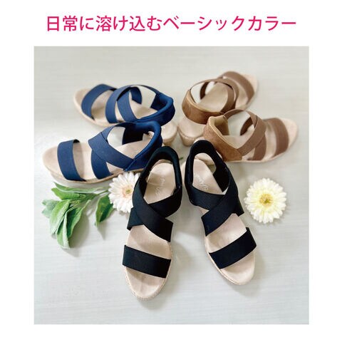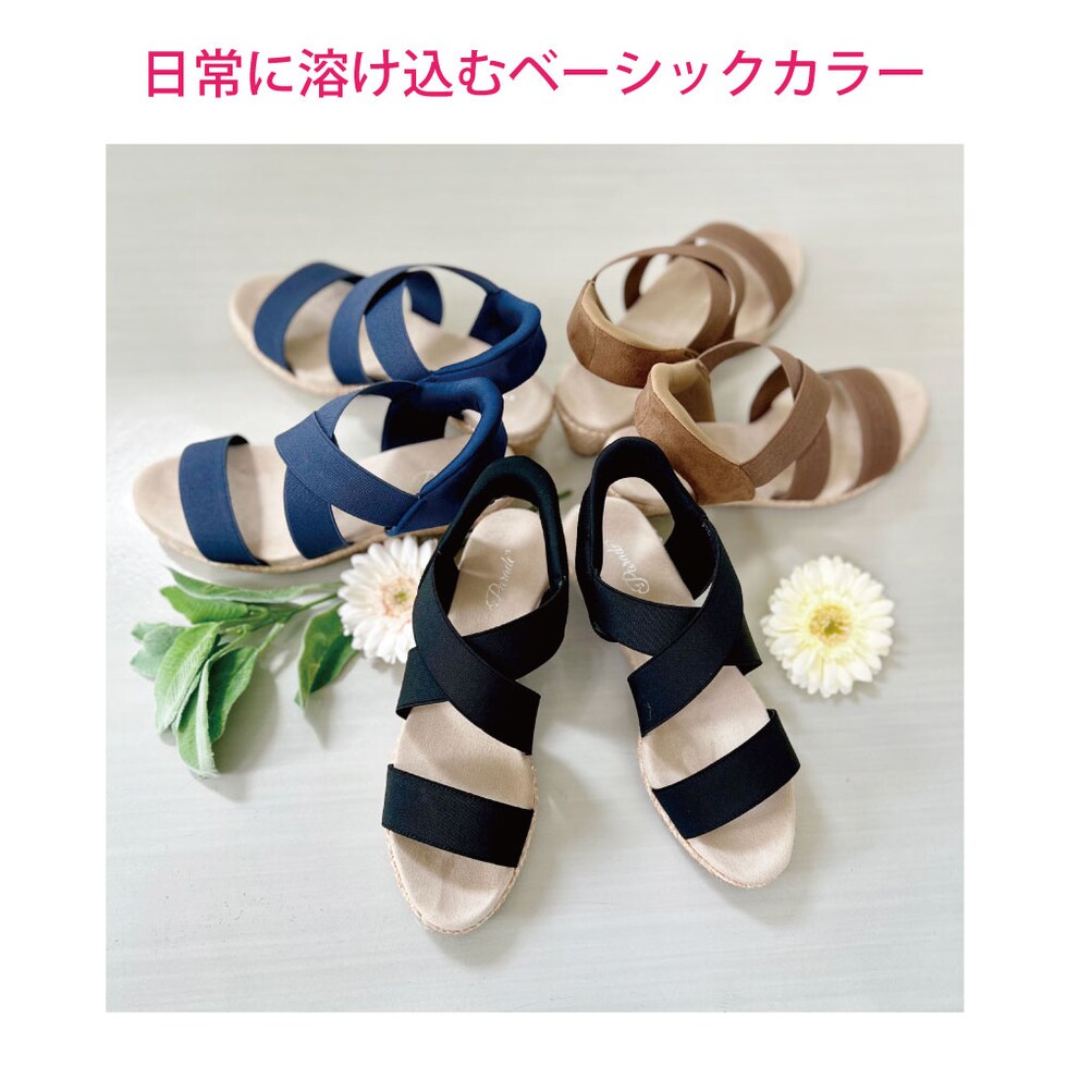 スポッと履けて、すらっとキマる。脱ぎ履きラクなクロスゴムサンダル。 ・優しくフィット、一日中歩ける |