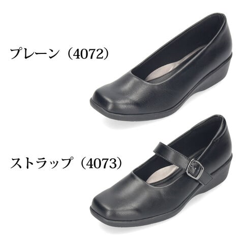 PANSY パンプス パンジーオフィス 4072 4073 レディース 黒 軽量 3E ウェッジソール 22.5cm プレーン(4072)