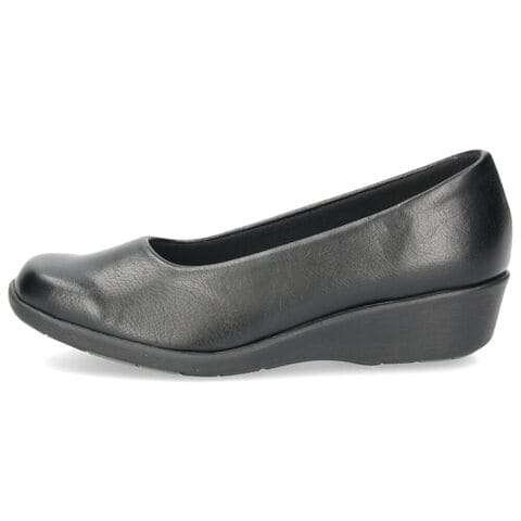 やさしく足に寄り添う、ストレッチ合皮の快適パンプス。