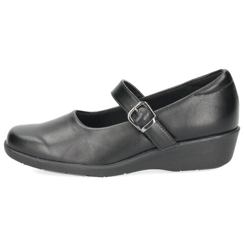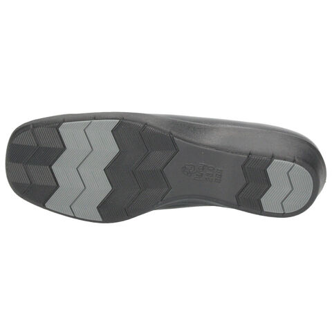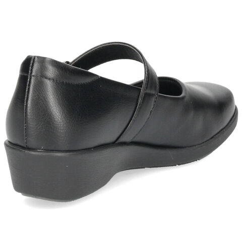 足幅の広い部分に自然にフィットするストレッチ合皮を使用し、長時間でも締め付け感の少ないやさしい履き心地。
