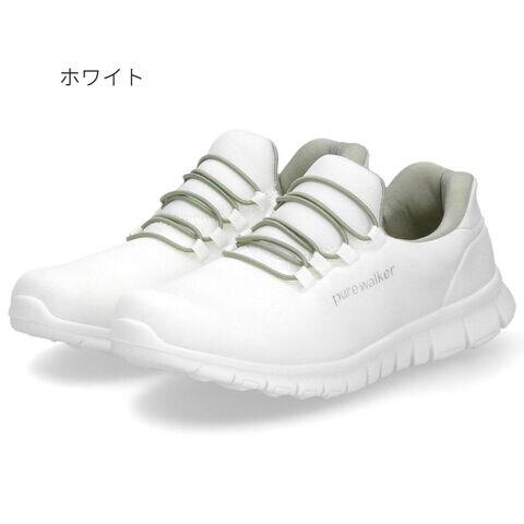 pure walker ピュアウォーカー スリッポン レディース スニーカー ハンズフリー ゴム紐 PW1501 23.5cm ホワイト