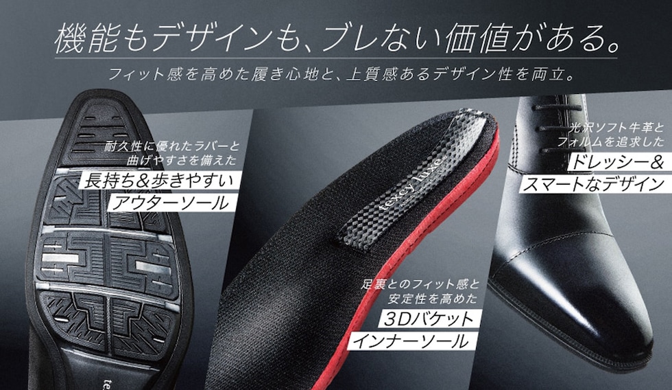 「Absolute Values(アブソリュートバリューズ)」シリーズは、現代のビジネスパーソンの足元を支えるために設計された、スマートかつ快適な一足です。