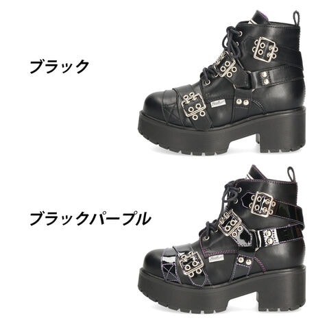 YOSUKE 厚底レースアップブーツ 6310008 レディース 防滑 黒 ブラック スタイルアップ LL(25.0) ブラックパープル