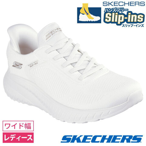 SKECHERS Slip-ins スケッチャーズ スリップインズ レディース スニーカー ボブス スポート スクワッド カオス 117497W ワイド 24.0cm OFWT-オフホワイト