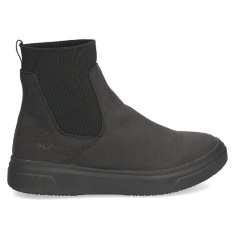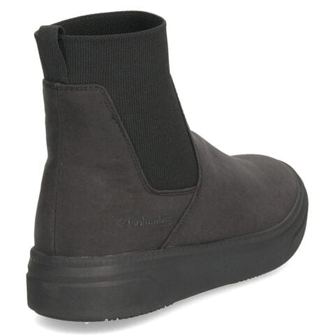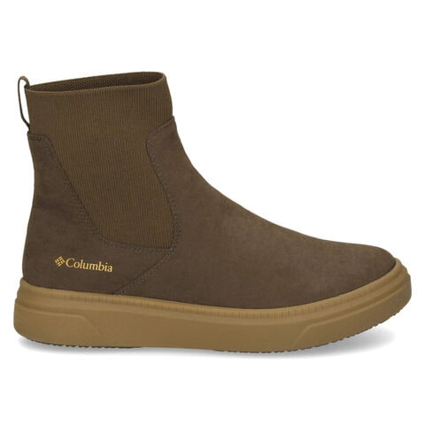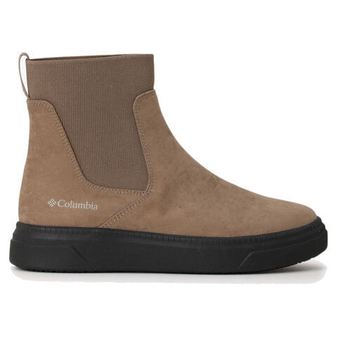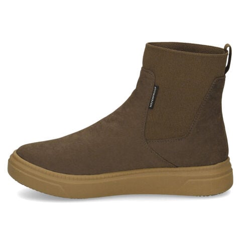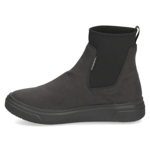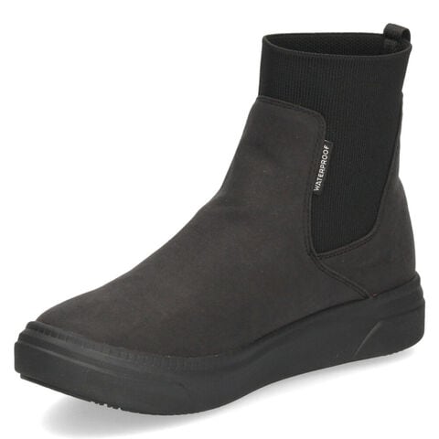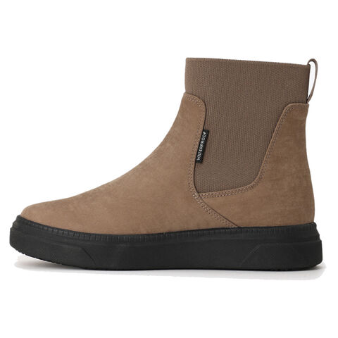 ウォータープルーフ仕様の起毛感のあるポリエステルスエードアッパーに、履き口部分のソックスのようなリブ編みが足元に優しくフィット。