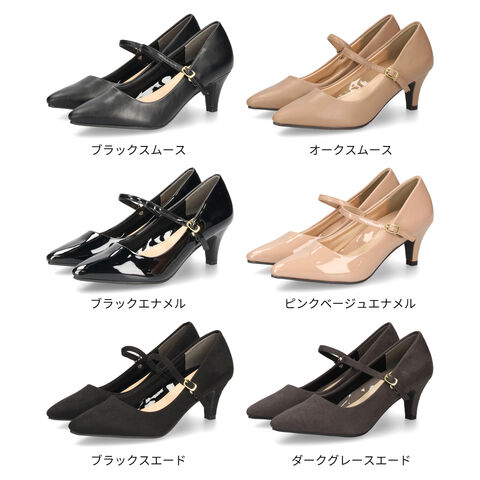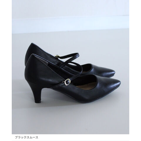 パンプス 結婚式 ストラップ レディース 二次会 パーティ 6センチヒール 19035 極ふわっ Parede 22.5cm ブラックスムース