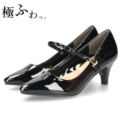 パンプス 結婚式 ストラップ レディース 二次会 パーティ 6センチヒール 19035 極ふわっ Parede 22.5cm ブラックエナメル