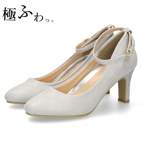 パンプス 結婚式 アンクルストラップ レディース 二次会 パーティ 7センチヒール 18160 極ふわっ Parede 23.0cm シルバーラメ