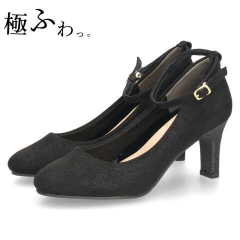 パンプス 結婚式 アンクルストラップ レディース 二次会 パーティ 7センチヒール 18160 極ふわっ Parede 23.0cm ブラックラメ
