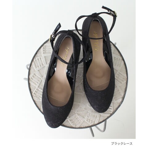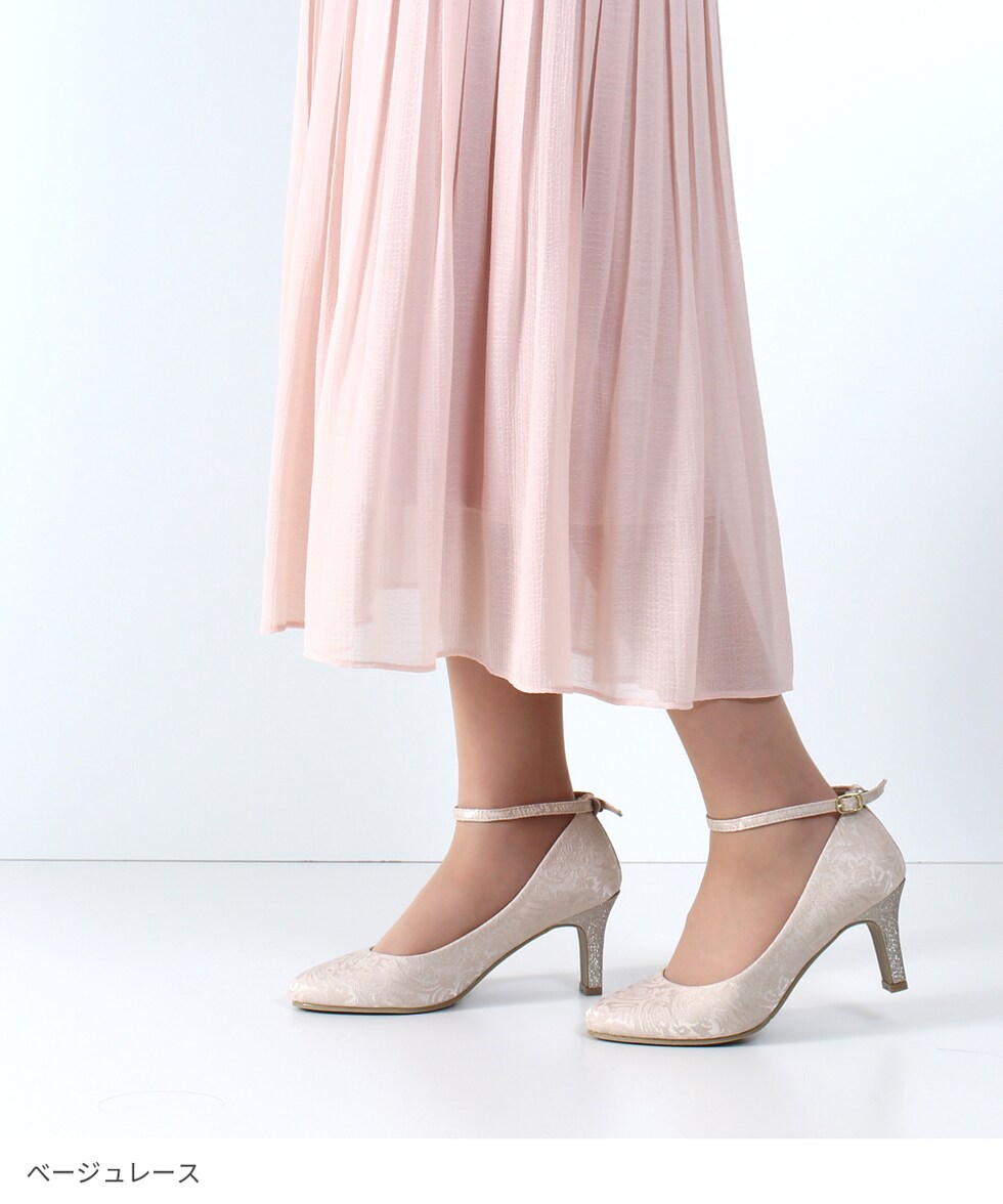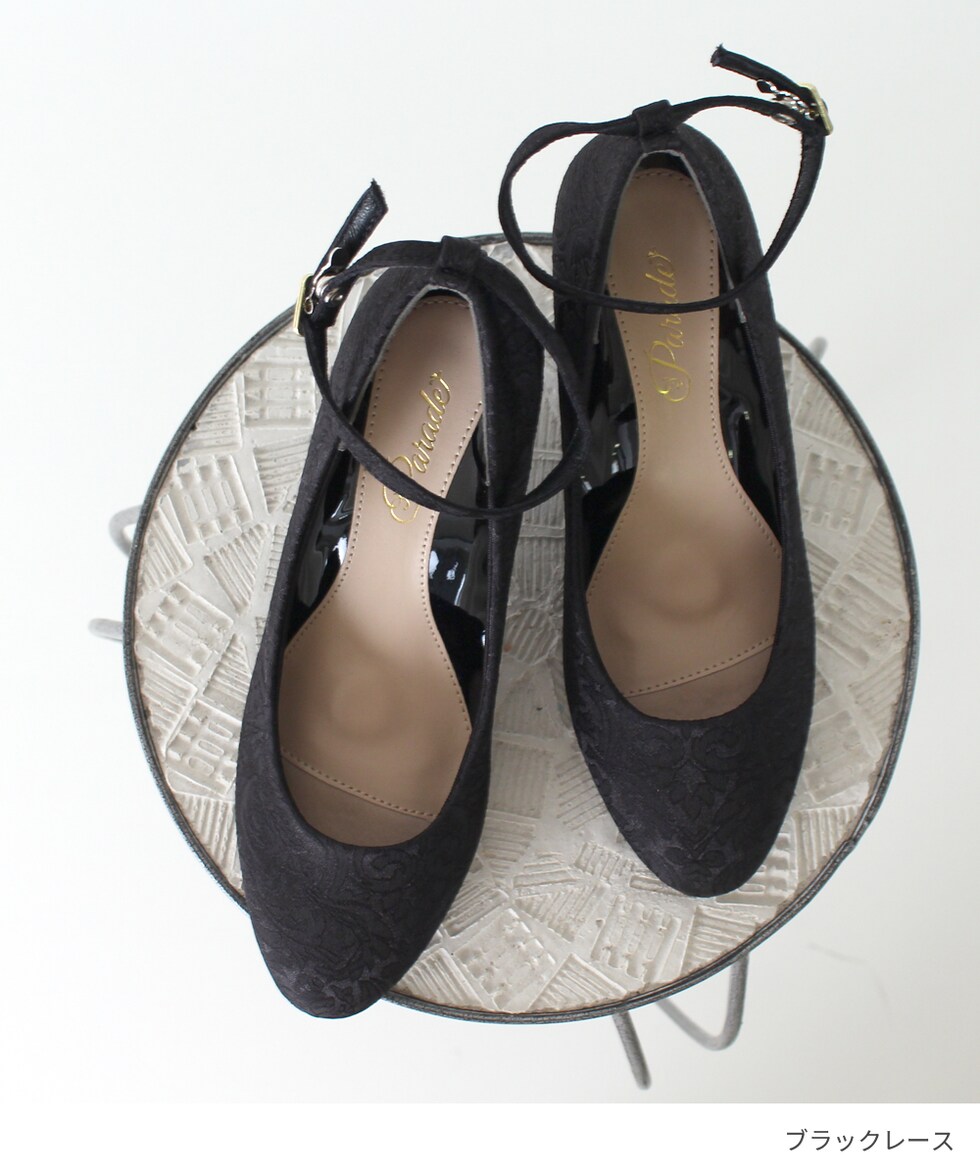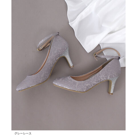パンプス 結婚式 アンクルストラップ レディース 二次会 パーティ 7センチヒール 18160 極ふわっ Parede 25.0cm グレーレース