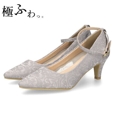 パンプス 結婚式 アンクルストラップ レディース 二次会 パーティ 6センチヒール 19038 極ふわっ Parede 23.0cm グレーレース
