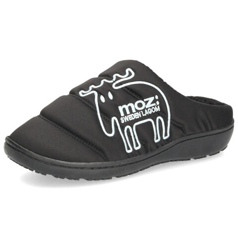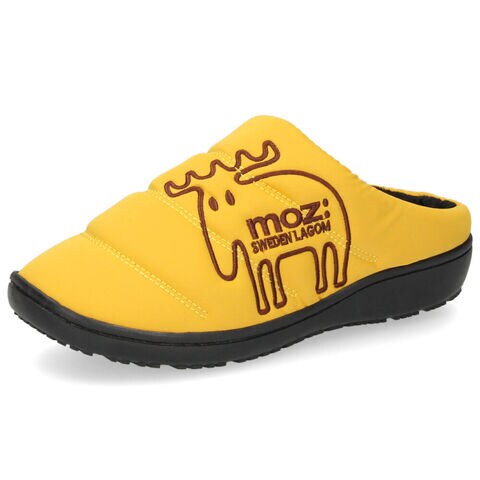 あったかダウン素材にヘラジカがポイントの、高反発クッションインソールが足にやさしい履き心地のクロッグシューズです。