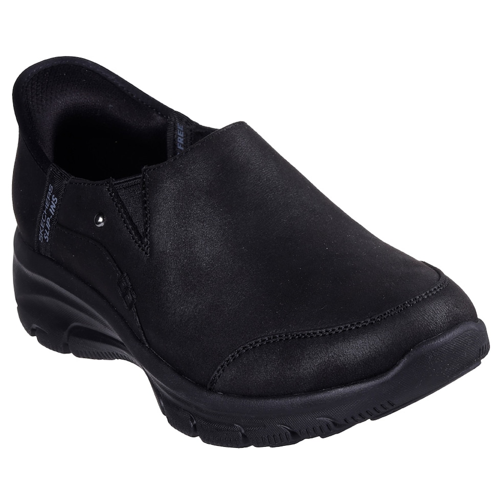 靴べら不要でスッと履ける、SKECHERS(スケッチャーズ)「Slip-ins(スリップインズ)」シリーズのレディーススリッポン。【Point 1】つま先だけ3E相当のゆったり設計かかとは通常の2E相当幅、つま先(指幅)だけ3E相当で指先ひろびろ。幅広さんでも快適に履けます。【Point 2】手を使わずラクに履ける独自の「Heel Pillow(ヒールピロー)」がかかとをしっかり固定し、脱ぎ履き簡単。【Point 3】ふわふわの履き心地「Air-Cooled Memory Foam(エアクールドメモリーフォーム)」インソールが足裏にフィットし、長時間歩行でも疲れにくい。【Point 4】ヴィーガン素材×おしゃれデザインなめらかな人工皮革で環境にも配慮。通勤から旅行、お出かけまで幅広く活躍します。一度履けばわかる“ラク”と“快適”の両立。SKECHERSならではの心地よさをぜひ体感してください。