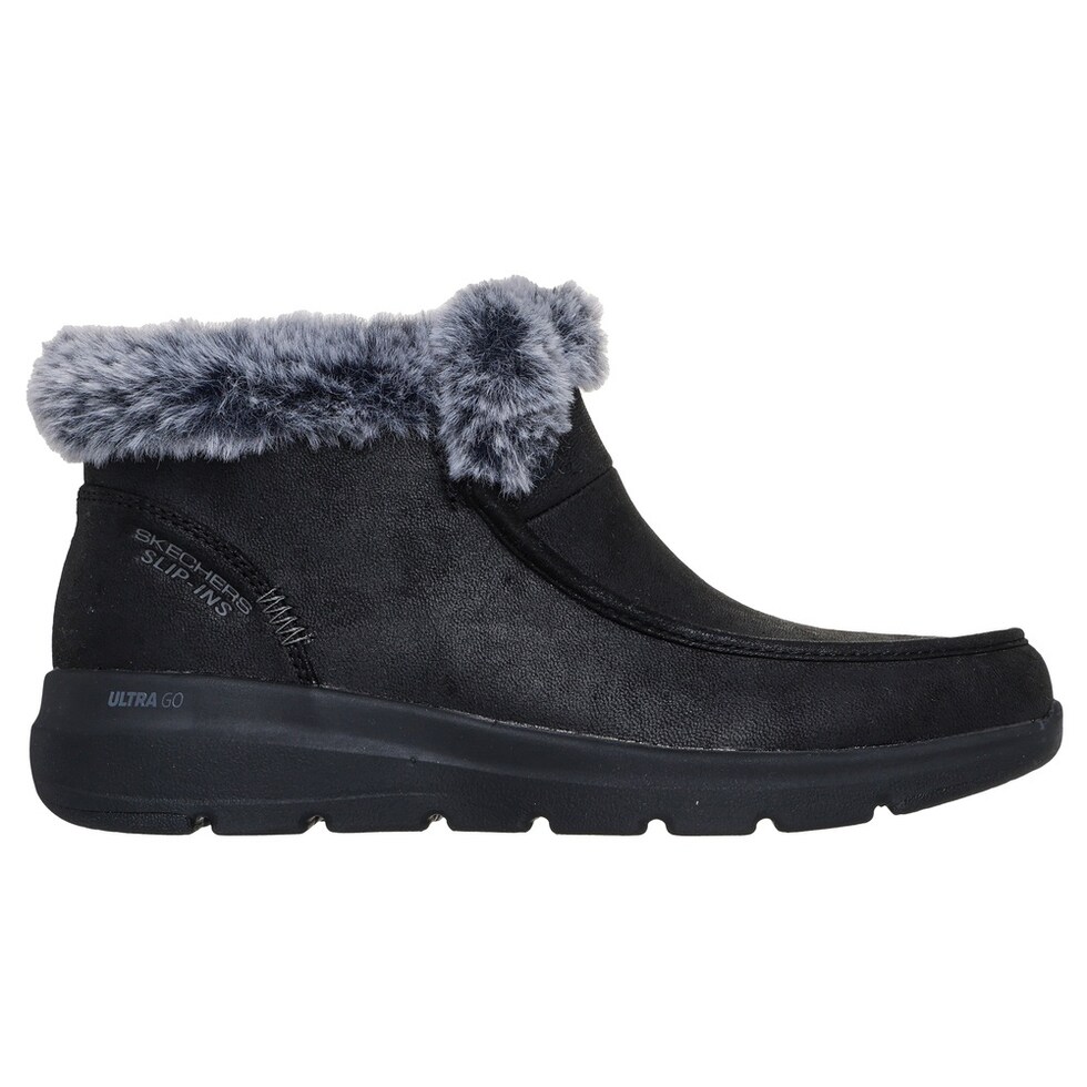 スケッチャーズ スリップインズ レディース ショートブーツ 靴 撥水 防水 防寒 グレーシャル ウルトラ SKECHERS 144221 ノーマル幅 24.0cm BBK-ブラック