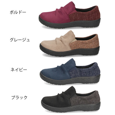 スリッポン レディース カジュアルシューズ パンジー 撥水 保温 防滑 4E 幅広 抗菌 Pansy 1510 24.0cm ネイビー