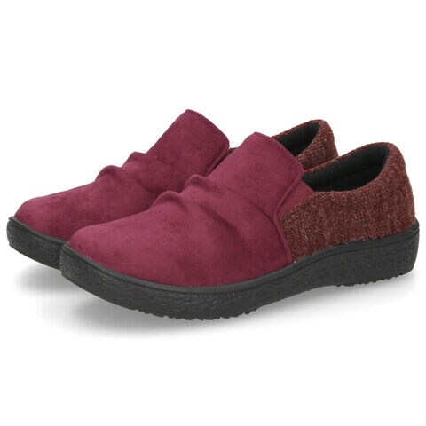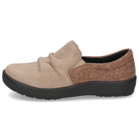 スエード調素材とツイード調素材の切り替えデザインがキュートなスリッポンシューズ。