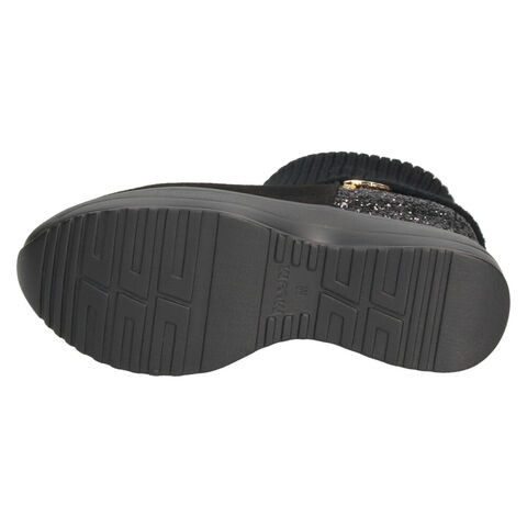 ブーツ レディース 厚底 グリッターリブニットインヒールショートブーツ 靴 ファスナー 黒 ブラックスエード スチール ムーム MUUM XJ304 Mサイズ スチール